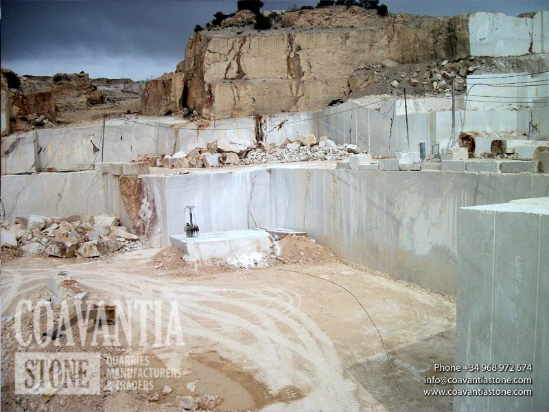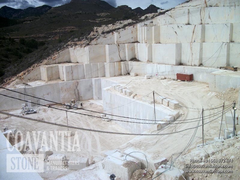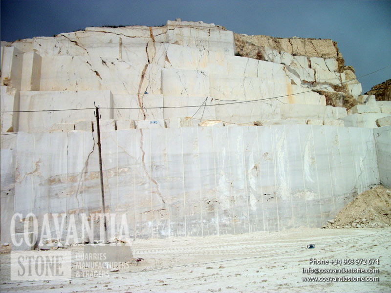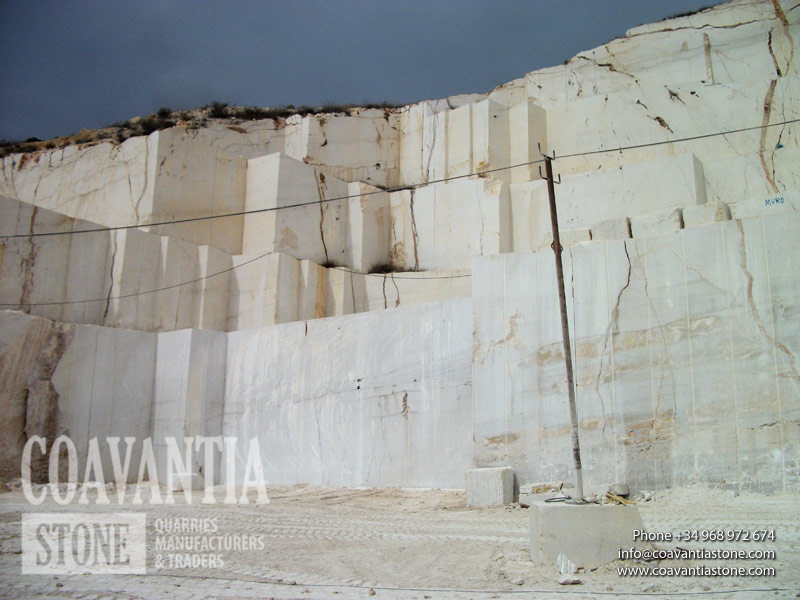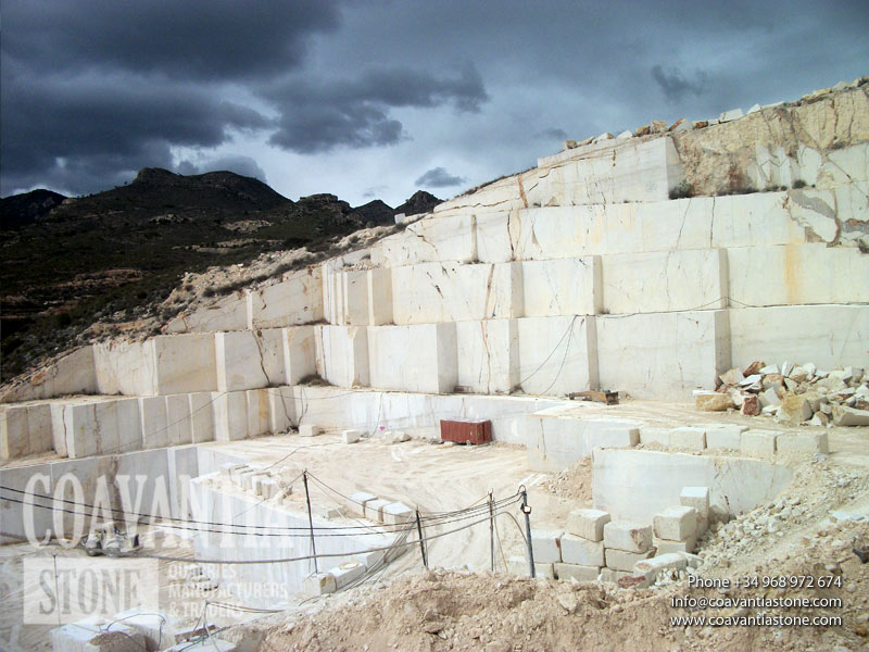 La Cantera de mármol Crema Marfil está situada en Fortuna, Población situada en la Región de Murcia. La Cantera de Crema Marfil del monte de Coto está situada en Pinoso (Alicante).