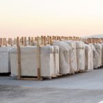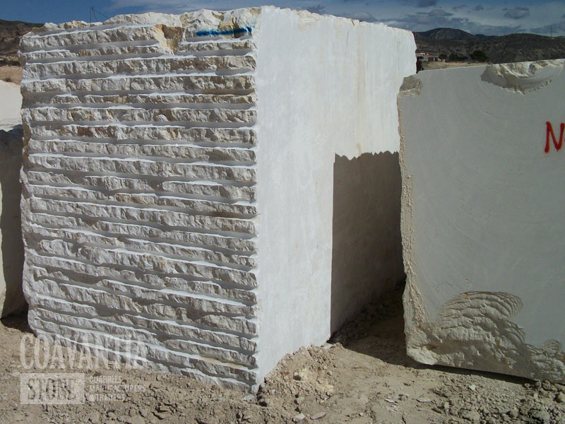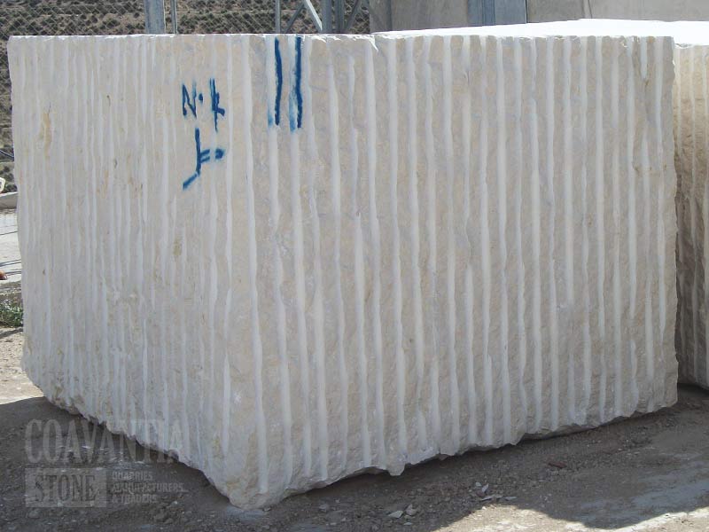 This natural stone is extracted from the quarry in blocks. There’s not a standard size, they usually measure between 2’4 and 3 meters wide, 1’4 to 2 meters long and 1’5 meters deep, and they are always referred to in cubic meters, therefore, and based on the dimensions mentioned, their volume can vary between 4.5 and 7 cubic meters. Larger sizes are not extracted because they would be too heavy for proper transport in a container.