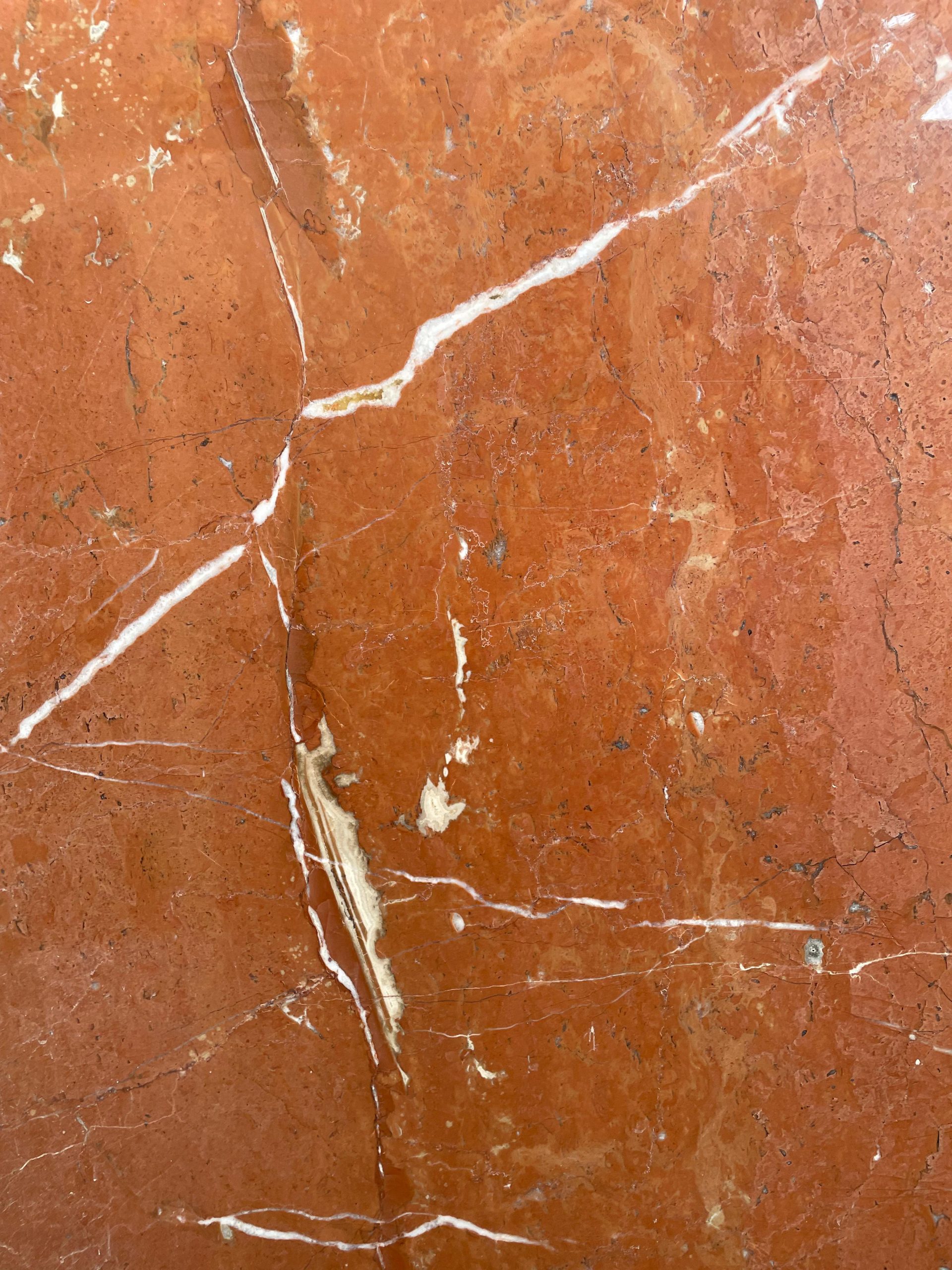 Polished Alicante Red Marble has a mirror-like shine that enhances the red and its white veins. It is often used in noble interiors.