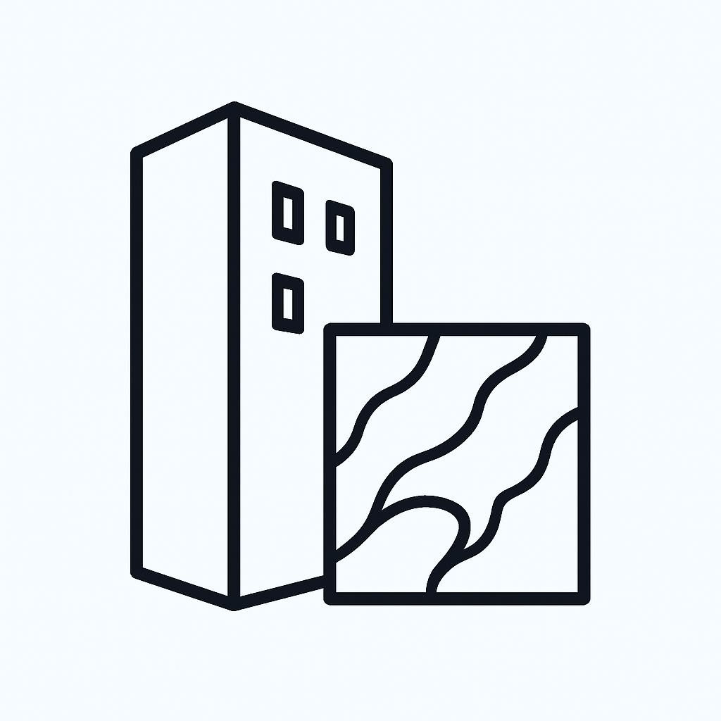 Interiors, it is used for cladding prominent walls, entrances, and halls; for designer flooring in homes, hotels, or exclusive commercial spaces; for countertops and kitchen or bathroom islands with a high visual impact; for fireplaces, columns, tables, and high-design furniture; and for sculptural and artistic elements.