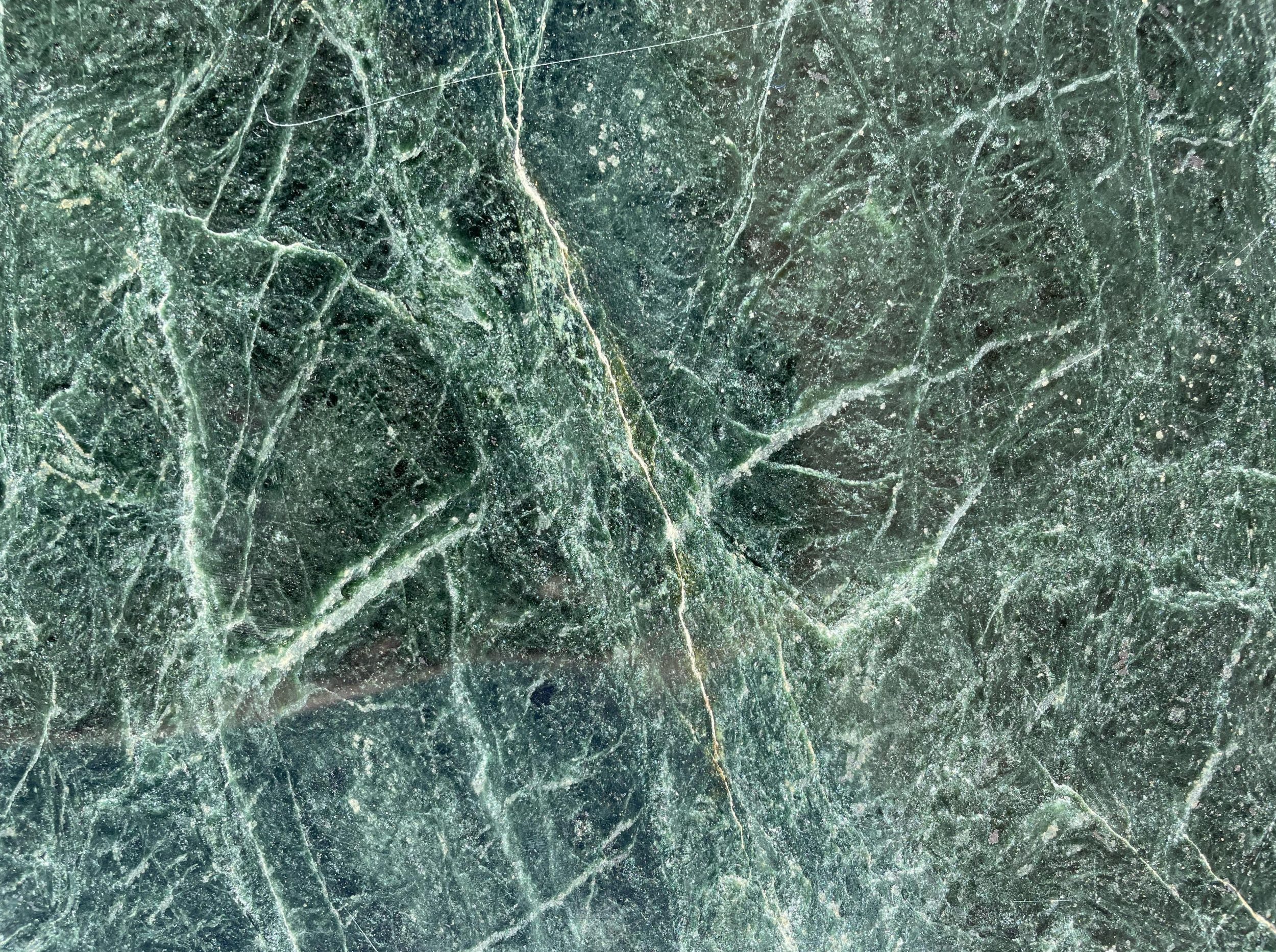 Polished Exotic Green Marble shines like a mirror and enhances the green and color of its veins, providing depth and elegance.