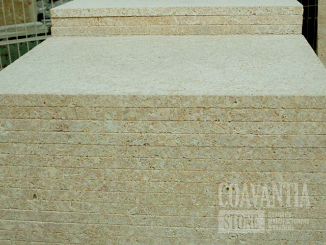 Slabs are the result of introducing Crema Marfil blocks in the factory. We can obtein slabs with the same height and length, with any desired thickness. After, any desired finish can be applied. Standard slabs are generally around 4 m².