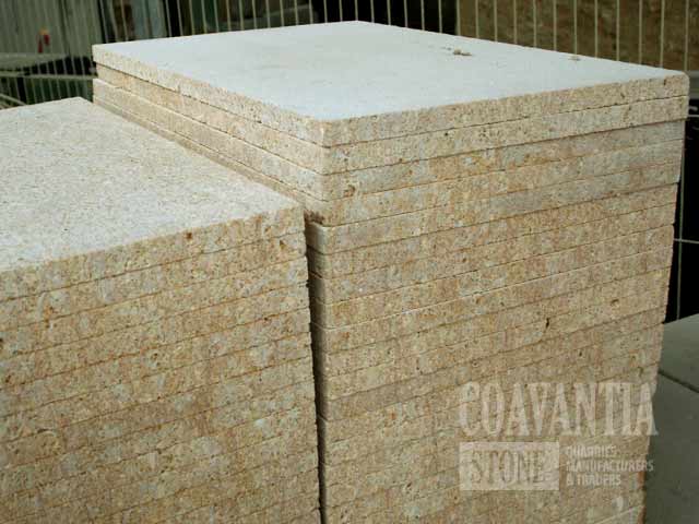 Our Fossil Yellow tiles are available in a variety of standard sizes and thicknesses, ideal for flooring and wall cladding. The tiles are highly versatile and can be used for residential, commercial, and large-scale projects. In Coavantia Stone we reinforce the tiles with a mesh backing to ensure durability, easier handling, and safe installation.