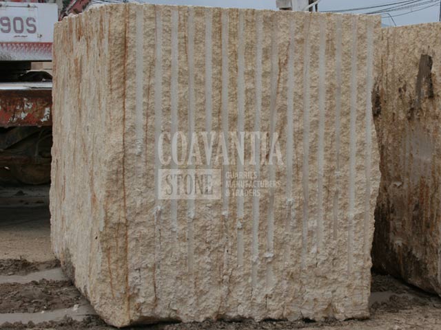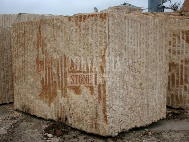 This natural stone is extracted from the quarry in blocks. There’s not a standard size, they usually measure between 2’4 and 3 meters wide, 1’4 to 2 meters long and 1’5 meters deep, and they are always referred to in cubic meters, therefore, and based on the dimensions mentioned, their volume can vary between 4.5 and 7 cubic meters. Larger sizes are not extracted because they would be too heavy for proper transport in a container.